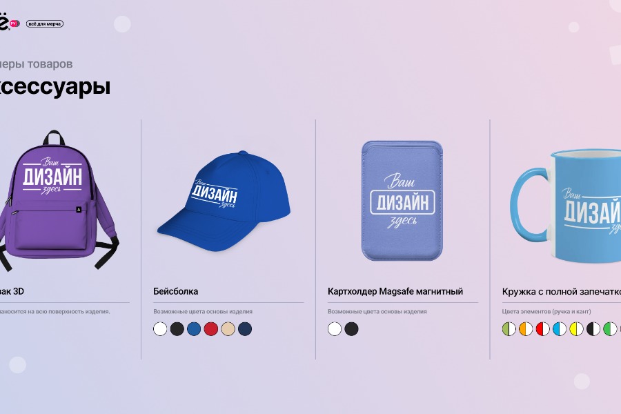 На платформе Всё.ру создание уникальных вещей для сотрудников максимально упрощено. Встроенный конструктор позволяет: