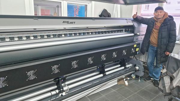 Инженер новосибирского представительства компании «КОВЧЕГ» установил экосольвентный принтер ARK-JET SOL 3202 с шириной печати 3,2 м в крупной РПК «Оригами» из Южно-Сахалинска. Эта фабрика рекламы занимается наружной рекламой, широкоформатной печатью, оперативной полиграфией, брендированием транспорта, изготовлением наградной продукции.
