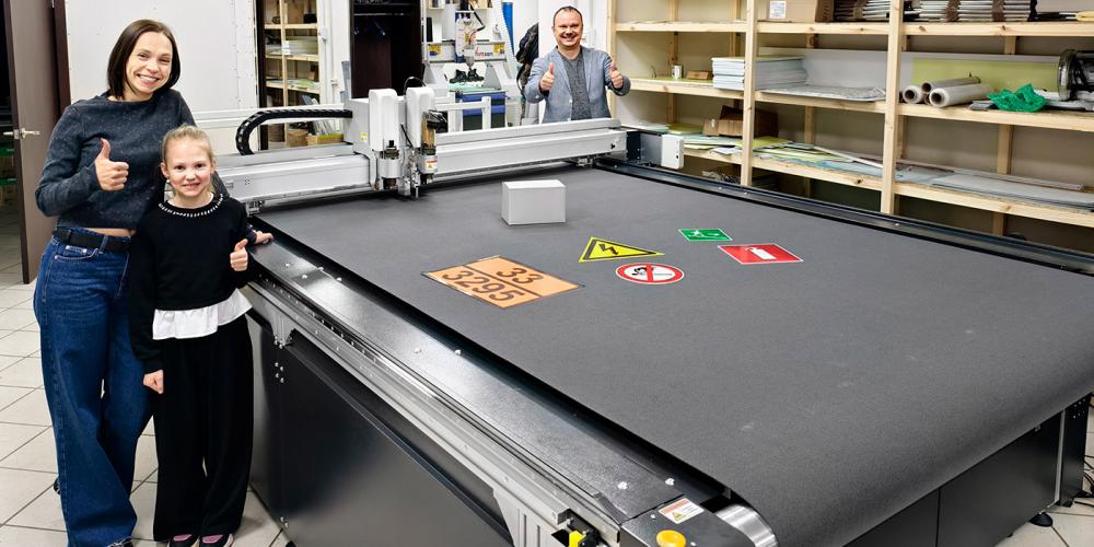 Сразу после запуска раскройного комплекса на нем были вырезаны партии знаков пожарной/электробезопасности и эвакуационной навигации. Клиент отметил, что оборудование продемонстрировало высокую точность на большой длине и высокое качество резки углов и окружностей.
