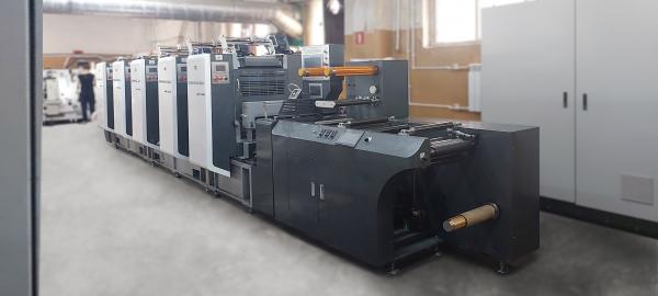 В 2024 году в рамках активной модернизации производства было принято решение о покупке полуротационной офсетной печатной машины HUADA, позволяющей печатать малые и средние тиражи самоклеящихся этикеток с высоким офсетным качеством и невысокой себестоимостью печати и запуска. При этом печатные офсетные формы изготавливаются на собственном допечатном участке, на флексо CtP AURA600E от компании «ЯМ Интернешнл», позволяющим записывать не только флексо формы, но и беспроцессные офсетные пластины. Важным преимуществом полуротационной печати является отсутствие необходимости в дополнительной дорогостоящей оснастке при смене раппорта печати. Печатные секции автоматически передвигаются в нужное положение в зависимости от заданной длины печати, а запечатываемый материал движется циклично, в соответствии с необходимой величиной раппорта. Максимальная ширина полотна в стандартной конфигурации составляет 360мм, однако, у производителя также доступны и ширины в 450мм, 550мм и даже 720мм. Диапазон толщины материала составляет 0,1 – 0,3 мм.