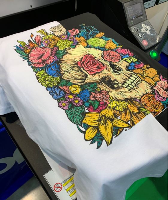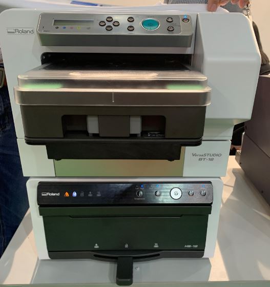 Принтер Roland VersaSTUDIO BT-12 полторы минуты печатает изображение формата А4. Преимущество аппарата в его компактности, так как термопресс для закрепления чернил встроенный. Печатает чернилами на водной основе и только по натуральным тканям.