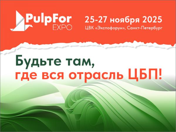 25-27 ноября 2025 года в ЦВК Экспофорум (Санкт-Петербург) состоится единственная в России, странах СНГ и Восточной Европе выставка оборудования и технологий для целлюлозно-бумажной, лесоперерабатывающей, упаковочной промышленности и отрасли санитарно-гигиенических видов бумаг – PulpFor